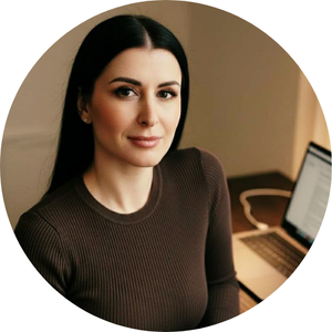Magistra praktické psychologie, jungovsky orientovaná psycholožka, krizová psycholožka a terapeutka zaměřená na práci s traumatem. Je členkou Ukrainian Umbrella Association of Psychotherapists (UUAP), která je součástí European Association for Psychotherapy.